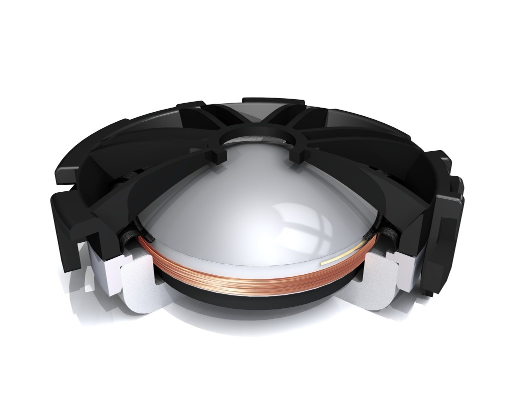 The tweeter features an ultra-light aluminium alloy dome to maximise efficiency and provide extended high frequency performance. Again, a low moving mass design provides superb transient handling and negligible distortion across the operating bandwidth of the driver.